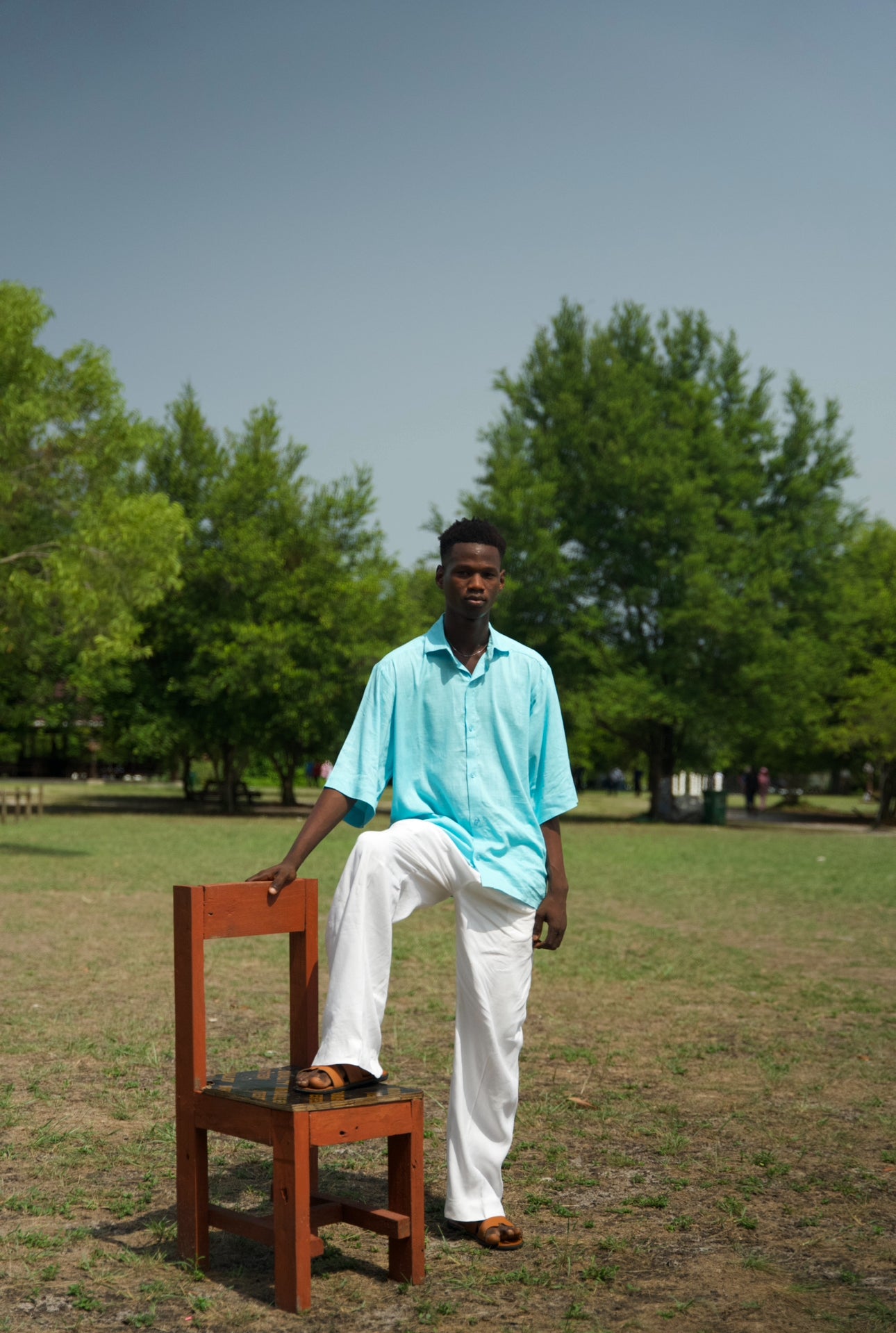 Cut from 100% pure linen, this look channels the serenity of open skies and the quiet self-assurance of still mornings. The shirt—shown here in Linen Breeze, a washed cerulean blue reminiscent of coastal air and salt-kissed horizons—captures the clarity of a midday sky and the ease of summer at its height. Its slightly oversized silhouette, relaxed collar, and effortless drape embody the rhythm of a life lived with intention.